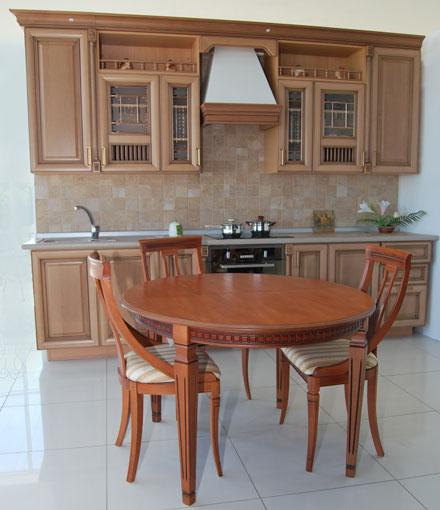 Фасады: массив сосны Столешница: пр-во Ligron Мойка: Granicom Стеновая панель: пластиковая Пристеночный плинтус: алюминиевый