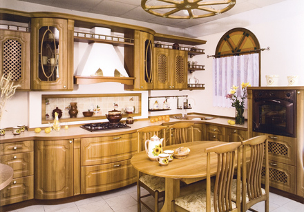 Кухня «Жасмин», цена за образец на фото - 135000 руб. Фасады из МДФ, 16 мм в пленке ПВХ эксклюзивное исполнение криволинейных фасадов со сложным профилем рисунка. Теплый цвет дерева этой модели гармонично сочетается с любым интерьером. Пленка ПВХ наносится вакуумным способом. Для создания более утонченного дизайна возможно применение решеток и других декоративных элементов. Возможность заказать дополнительный декор в едином стиле с выбранной Вами кухней.