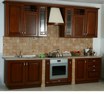 Фасады: пр-во Италия Столешница: искусственный камень с влитой мойкой Стеновая панель: керамическая плитка Пристеночный плинтус: алюминиевый Ручки: бронза со вставкой форфора